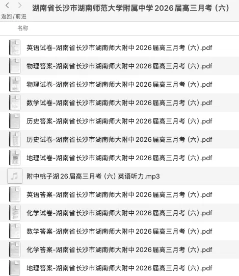 今天与大家分享的是一份「2026湖南省长沙市湖南师大附中2026届高三月考(六)」试卷。
