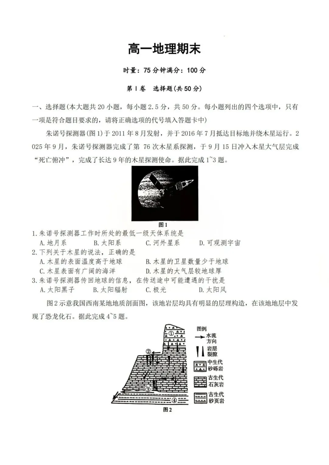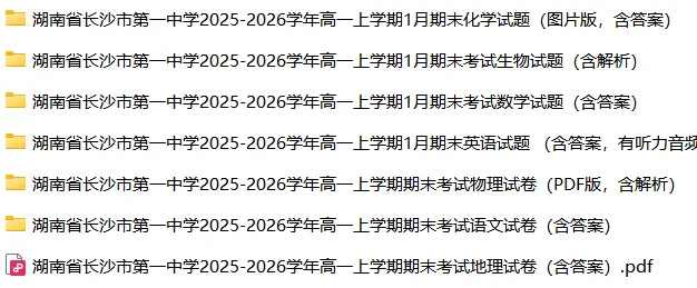 湖南省长沙市第一中学2025-2026学年高一上学期1月期末