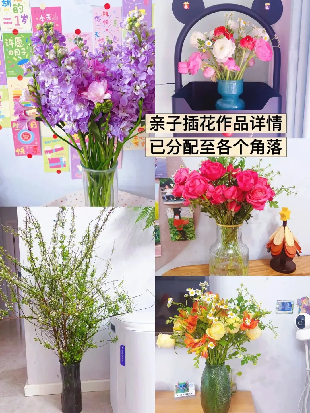 周六亲子插花时,我挺诧异的,孩子的插花配色还挺好的。这可能得益于她的绘画课,对色彩比较敏感。