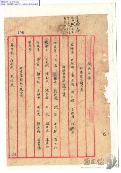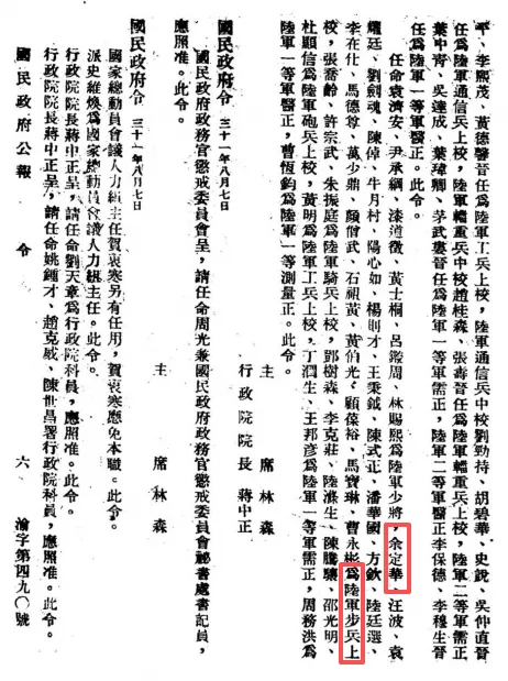 1942年1月被国民政府军事委员会铨叙厅颁令叙任陆军步兵上校。