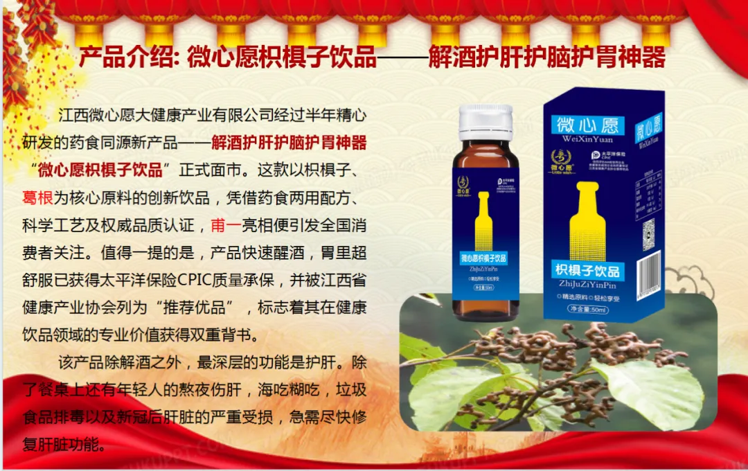 商会交流环节亮点纷呈,务实合作氛围浓厚。萍乡市宜春商会秘书长张祖正、会长助理万炳全与宁波市宜春商会副会长刘如斌、太原市宜春商会秘书长吴明泉、浙江省宜春商会秘书长彭飞龙等多地商会围绕秘书处工作创新、会员服务提升、跨区域资源整合等议题展开深度交流,分享商会建设经验,凝聚发展共识。值得一提的是,萍乡市宜春商会特别赞助了会员企业江西微心愿大健康产业出品的微心愿枳椇子饮品,价值2万元。这款融合传统养生智慧与现代工艺的饮品,以枳椇子、葛根为核心原料,口感温润回甘,赢得与会者一致点赞,成为展示江西优质产品的生动载体。