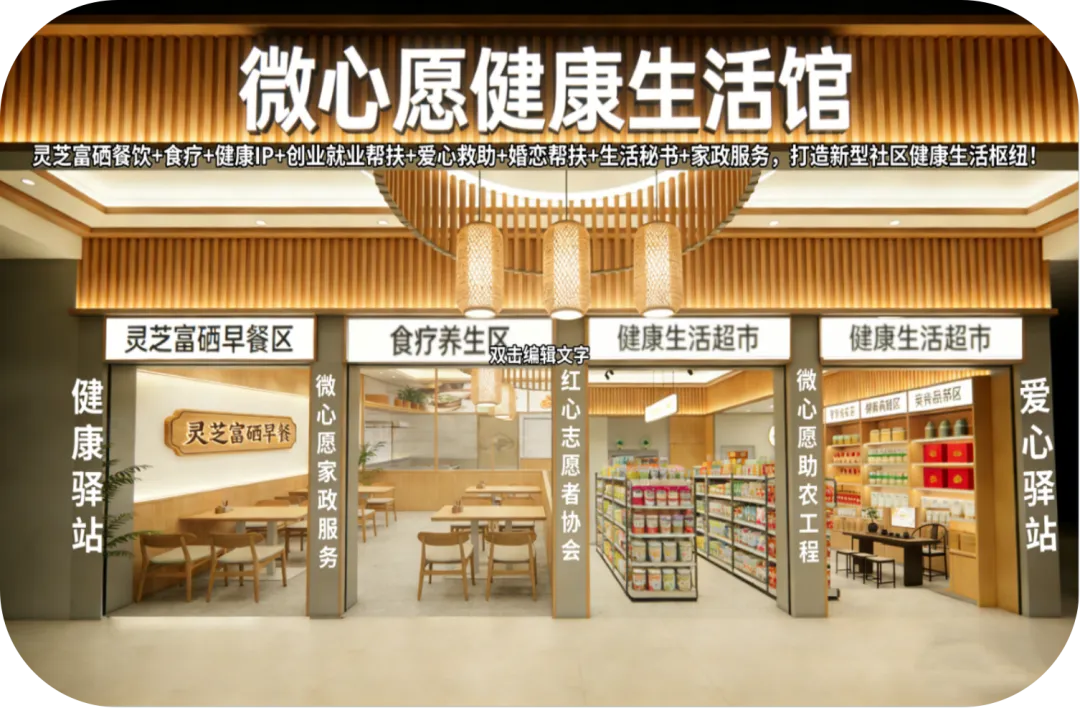 构建“富硒早餐+食疗餐饮+健康生活超市+社区服务+创业孵化+家政服务+公益行动+爱心互助于一体的村社健康服务生态,实现全品类、全场景健康生活服务覆盖,精准补齐社区、乡村服务短板。同步通过凝聚村社力量,完善基层服务体系,让村社群众在家门口就能享受全方位、便捷化的健康与生活服务。通过清晰的合伙人体系与标准化复制模式,快速实现区域覆盖与规模化发展。拓宽千城万店产品供应链。