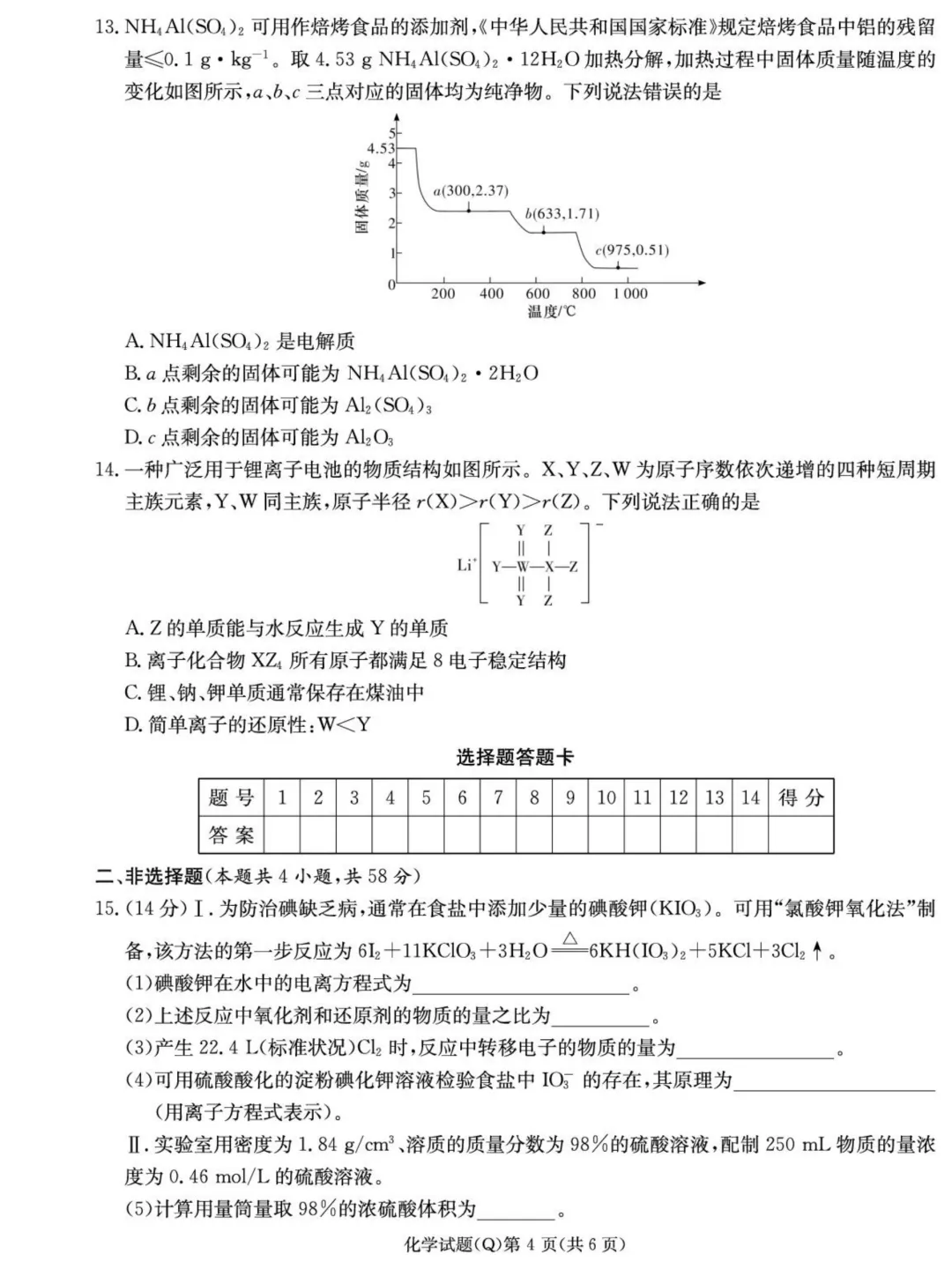 六、高中化学二轮复习小题精练/大题精练