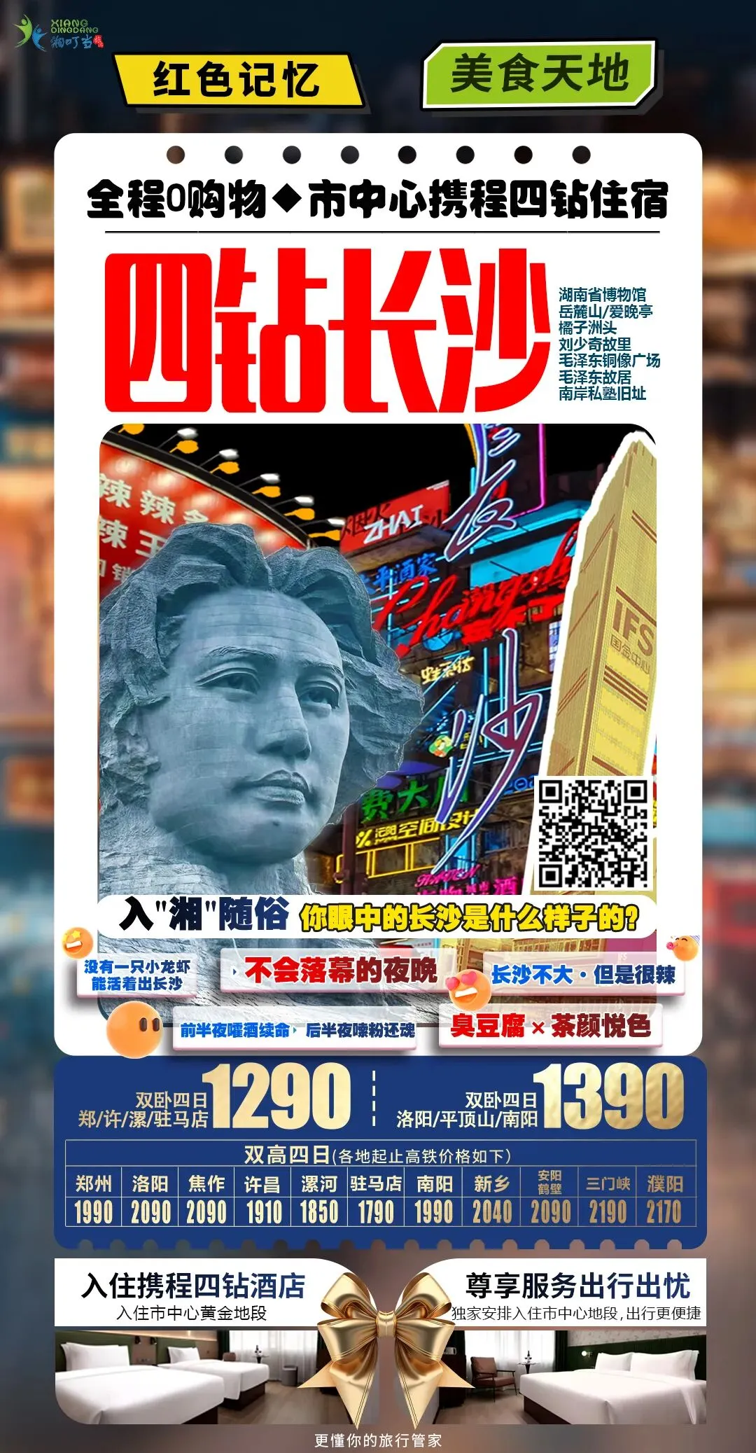 ①️【四钻长沙】双卧四日1290元