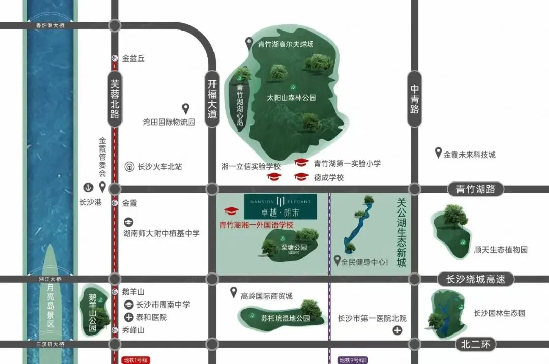 中交瑞启芙蓉(隆平新城):配套的育才东屯小学是育才集团合作办学,中学是长沙市一中双语实验学校东校区(一中合作办学),教育局明确说“教学资源共享”。