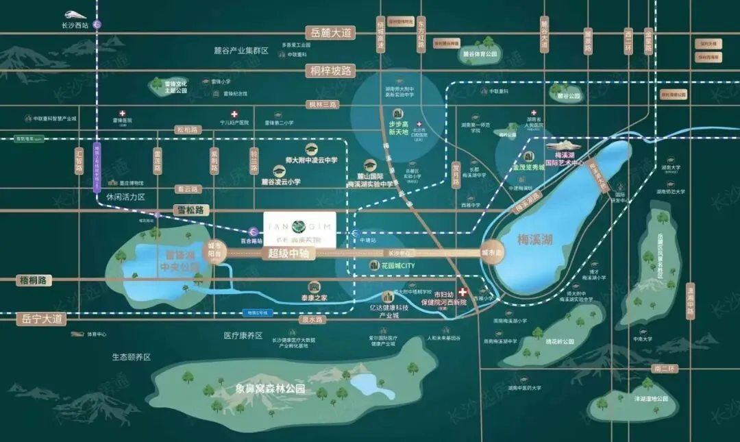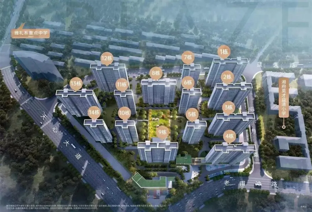 保利梅溪天珺(梅溪湖二期):配套的湖南师大附中梧桐学校,是师大附中合作办学的,核心课程跟师大附中梅溪湖中学同步,2025年已经开学了。