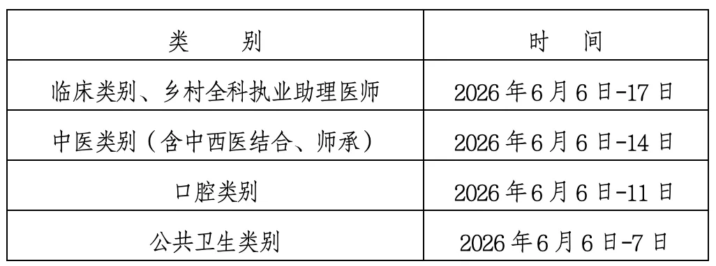 2026年,医学综合考试均为计算机化考试。时间安排如下:
