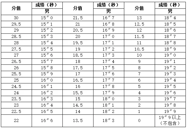评分标准:中投,每投中1球,得4分,投中15球(含)以上为满分60分;三分球,每投中1球,得6分,投中10球(含)以上为满分60分。