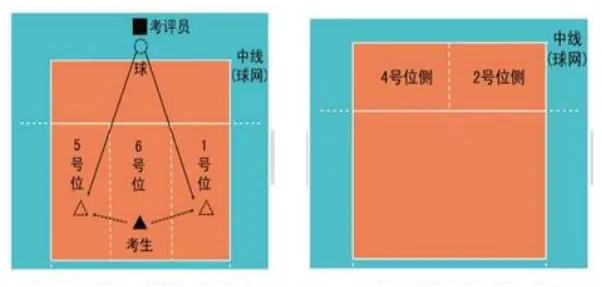 考试方法:考生可在发球区内任意位置连续发球5次,每次发球根据落点区域的不同获得相应的分数(取4次发球最高得分为最终成绩)。