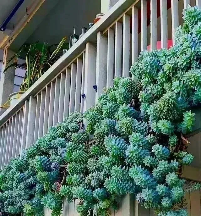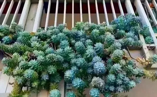 多肉从9楼阳台倾泻而下 , 像瀑布一样 , 整整养了9年。