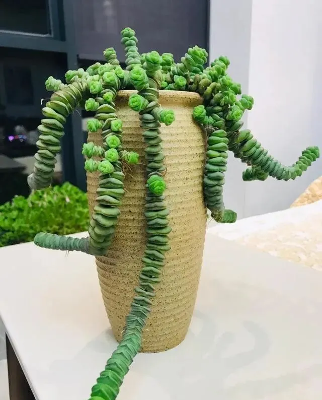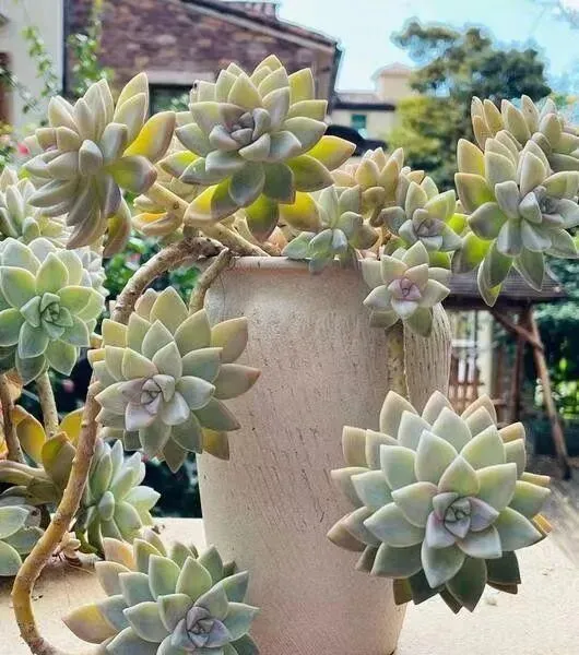 除了淡雪 , 其实还有好几种多肉 , 都能养出垂吊效果 , 夏天高温也扛得住。