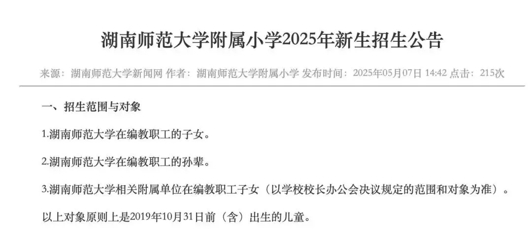 * 招生范围:主要面向湖南师范大学在编教职工的子女、孙辈,以及相关附属单位的在编教职工子女。