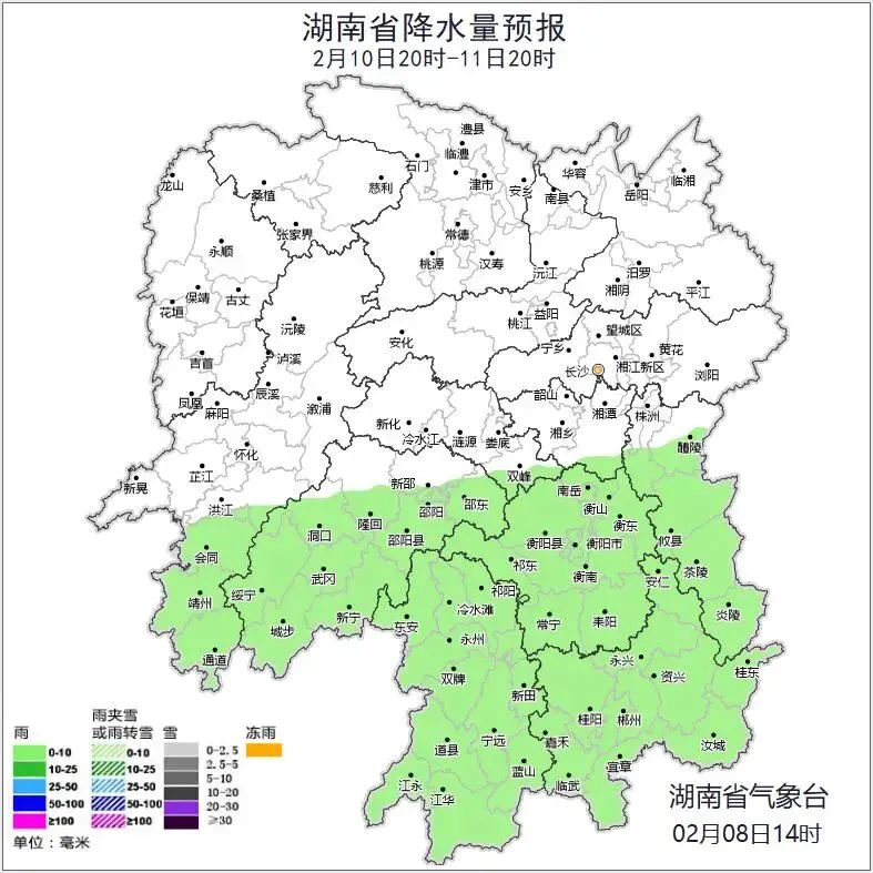 进入2月以来,湖南主打阴雨路线。然而,雨水似乎并没打算离去,2月8日,中央气象台预计,伴随着高原槽东移,又会有一次较大范围雨雪天气登场,南方多地可能出现雨转雪再转雨的情况。