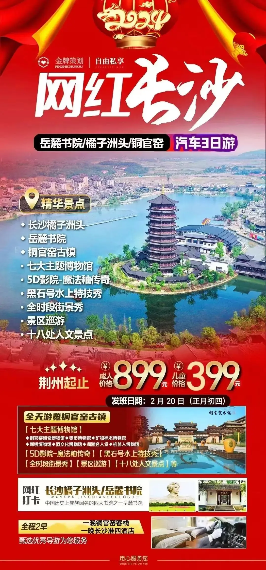 长沙铜官窑古镇/橘子洲头/岳麓书院三日游