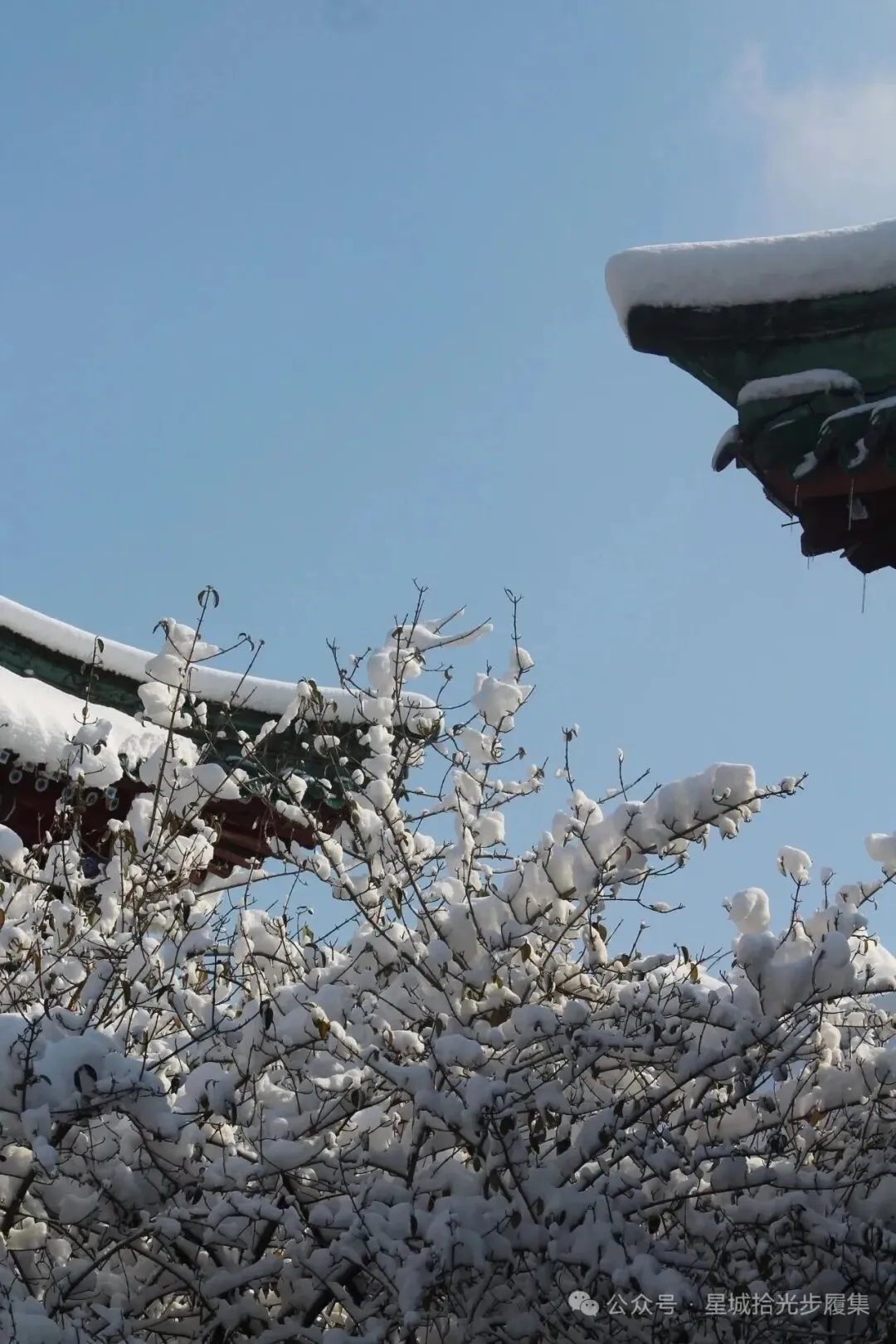 红墙、绿瓦、白雪,调色盘都不用调,原图直出就是大片。