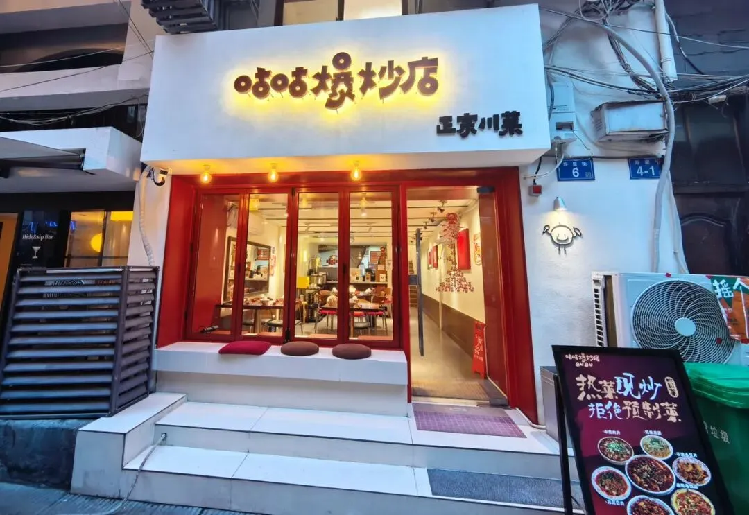开福区通泰街道寿星街6号,一家名为“咕咕爆炒”的小店,正是其中之一,以一口烧得通亮的铁锅,破译着直通川渝的味觉密码。无需机票与行程,推开那扇红色边框的玻璃门,便是九宫格沸腾的川味江湖。