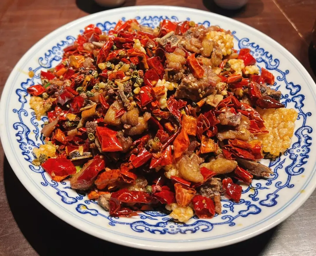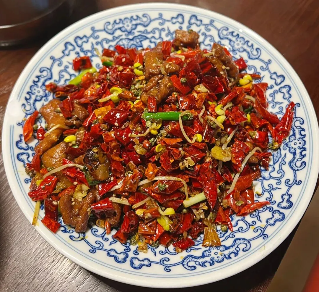 它不仅仅是一道菜,更是一种红火、热闹、酣畅淋漓的用餐仪式,让你充分享受到在辣椒堆里“寻宝”的乐趣。需要注意的是,辣度较为地道,建议不善辣者搭配饮品、米饭一同享用。