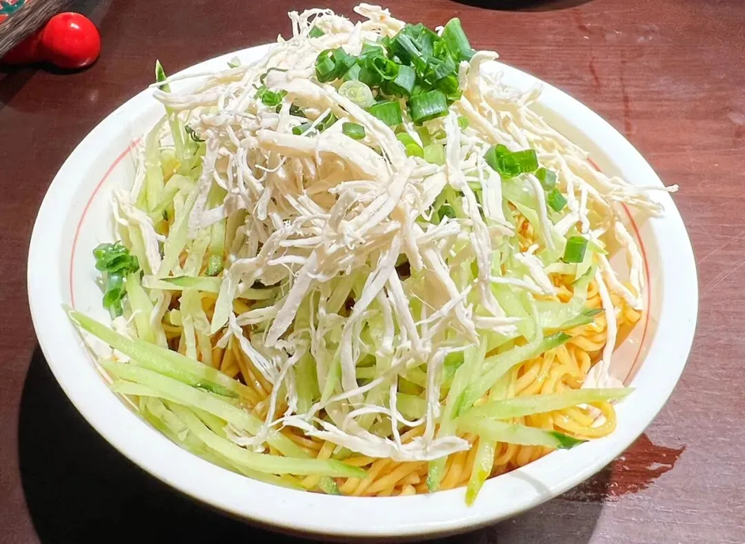 翠绿黄瓜丝与雪白鸡丝,在琥珀色的酱汁中交织。碱水面爽口弹牙,根根裹满酸、甜、麻、辣平衡得刚刚好的秘制酱汁,入口是芝麻的醇香、醋的微酸、糖汁的微甜与红油的鲜辣,麻而不燥,辣而回甘,宛若舌尖上的清风,拂去油腻,唤醒味蕾。