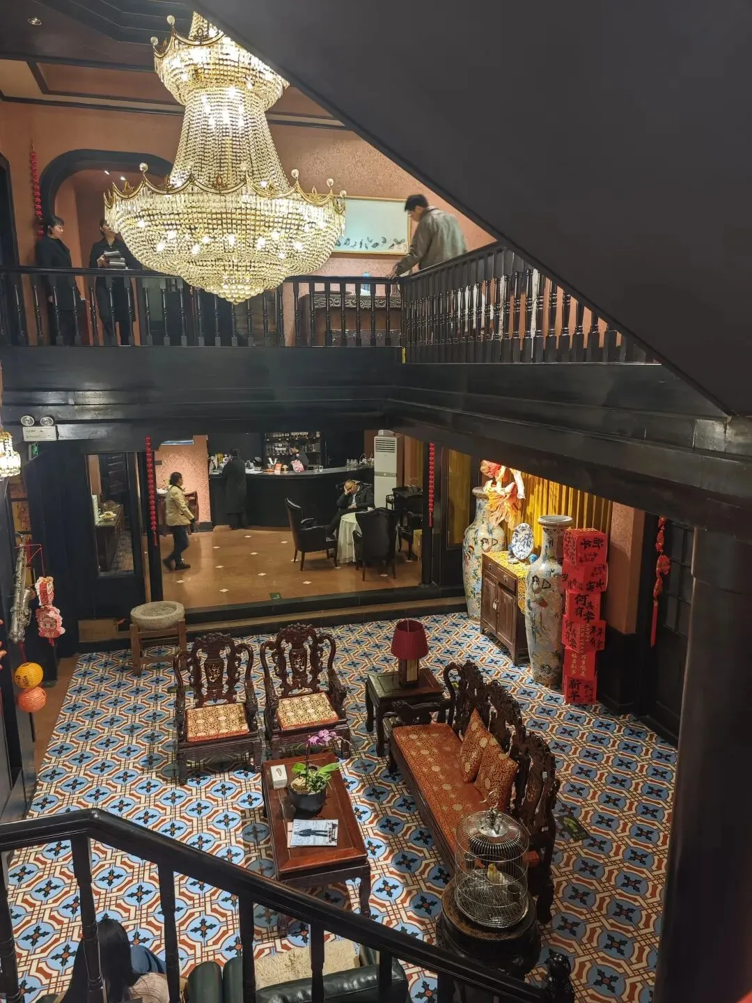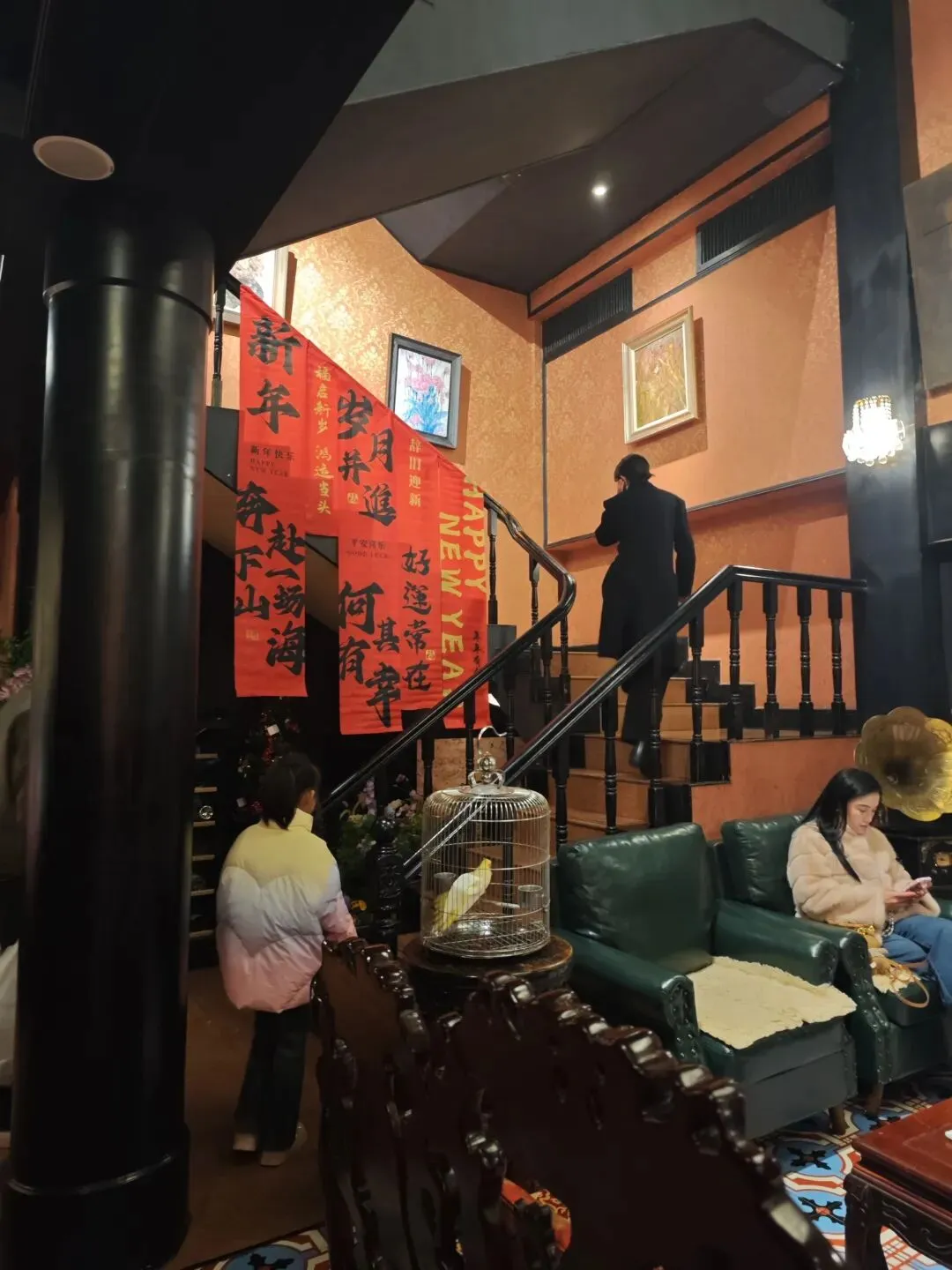 我们是晚上去的,从一条小路拐进去,忽然就感觉从城市转换到乡村,一些自建房闯入视线,再一拐,是民国风独栋洋房。有种隐于市的感觉。院内有少量停车位,不多。装修比较有风格,我觉得很适合穿着旗袍去拍照,应该很出片。