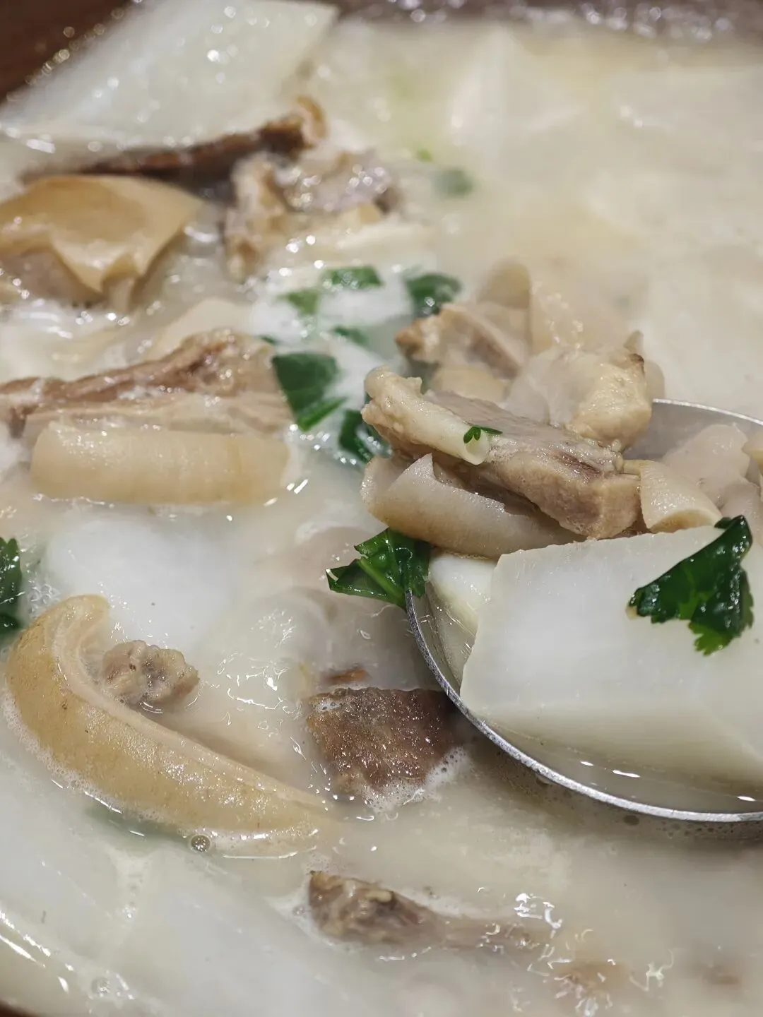 其中“清炖羊肉”我个人很喜欢,很适合冷天去吃,229元;炒河蚌肉也极快地光盘了,89元;想吃甜酒饼(39元),服务员下错单了没吃上,免费赠送了一份玉米饼。
