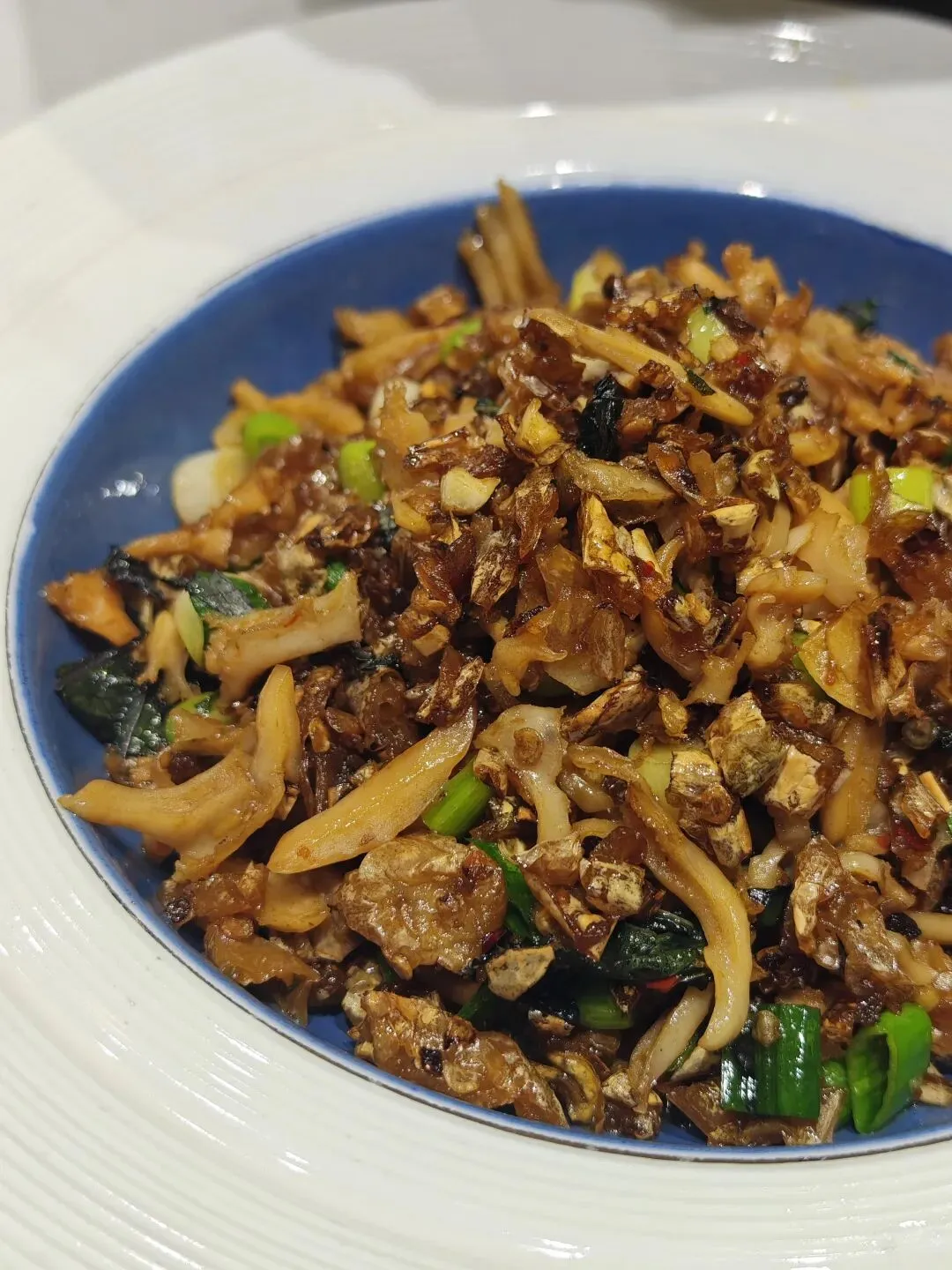 同行人说,旁边都是高楼,这一块确实两三层的楼房,隐藏在“谷底”的感觉。这居然也被我们找到了。大厅也有两三人的桌子,楼上是包厢,我们定的10人间。如果天气好,庭院户外还有桌椅,亭子。