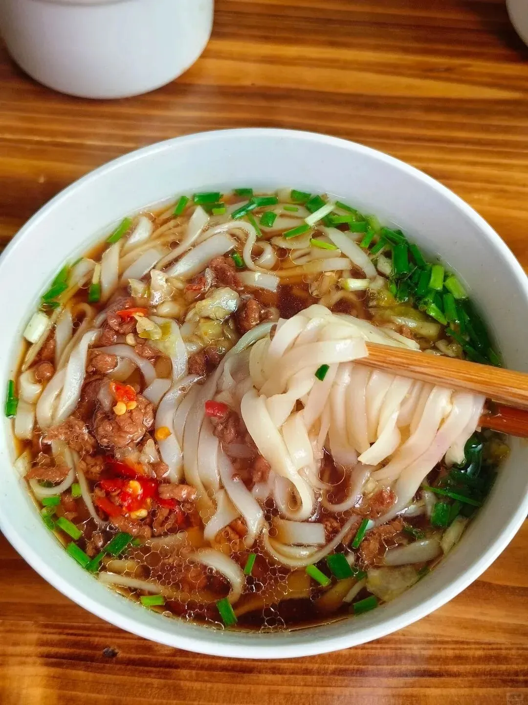 4. 湘潭米粉:湘潭人早餐标配,就像咱东北豆浆油条!粉细有韧性,骨头慢熬汤底,加牛肉、牛杂等码子和剁椒,粉滑汤鲜,几块钱一碗,性价比拉满。