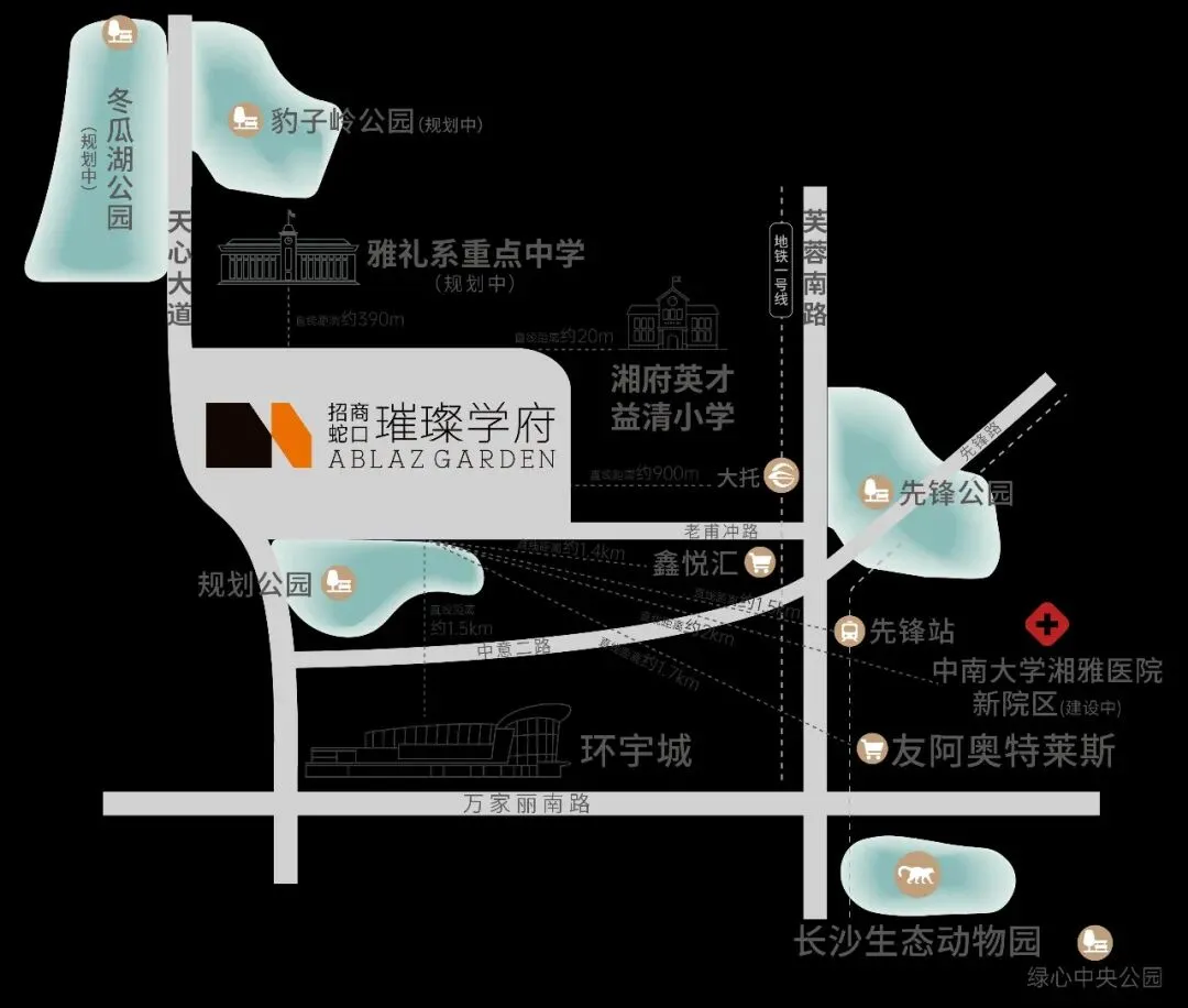 地段,永远是房地产的核心逻辑。璀璨学府落子长沙市天心区天心大道与老甫冲路交汇处,正踞省府+奥体双核板块,坐镇长株潭融城国家战略的核心腹地,执掌着长沙南城的未来发展红利。