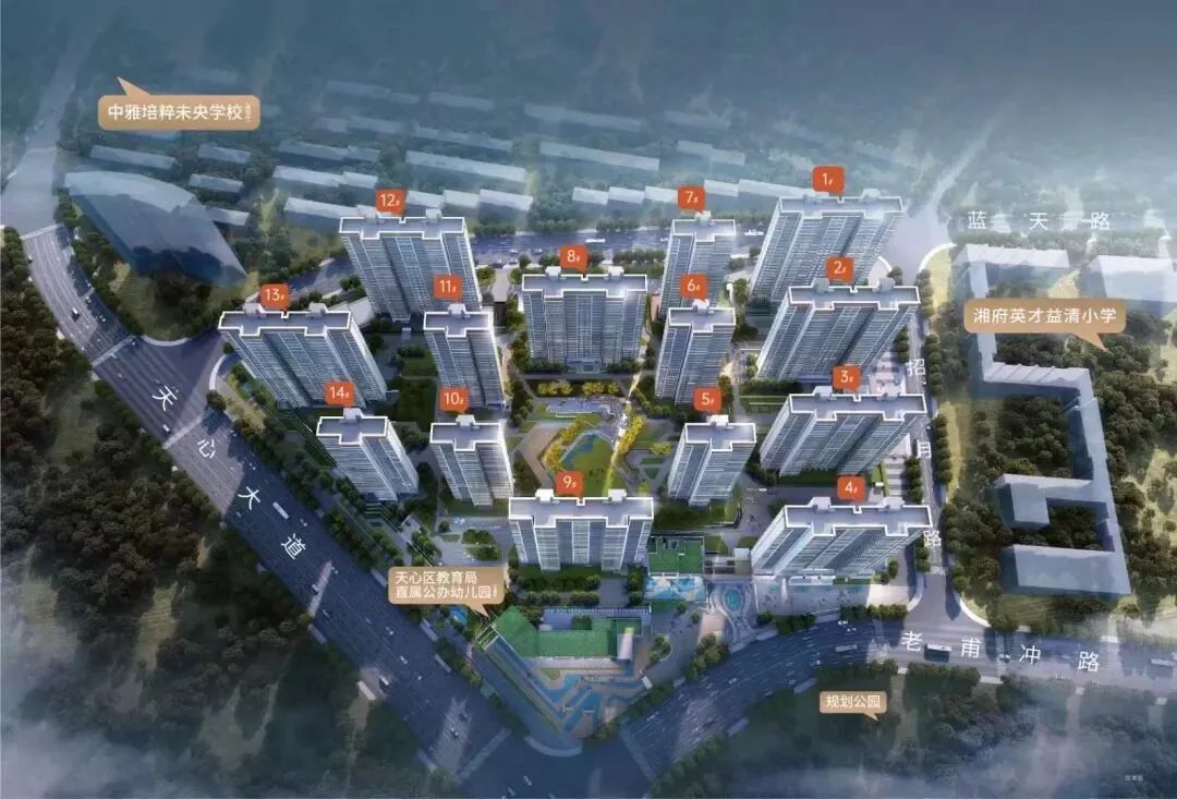 地段,永远是房地产的核心逻辑。璀璨学府落子长沙市天心区天心大道与老甫冲路交汇处,正踞省府+奥体双核板块,坐镇长株潭融城国家战略的核心腹地,执掌着长沙南城的未来发展红利。