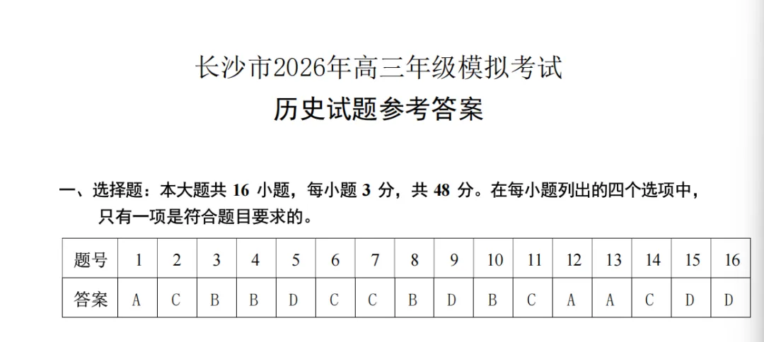 一、选择题:本大题共 16 小题,每小题 3 分,共 48 分。在每小题列出的四个选项中,