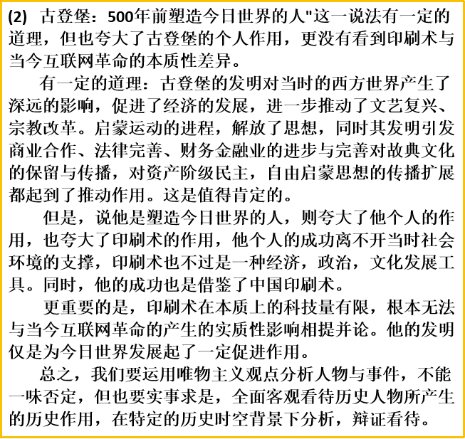 (2)根据材料,结合所学知识,评析“古登堡:500 年前塑造今日世界的人”这