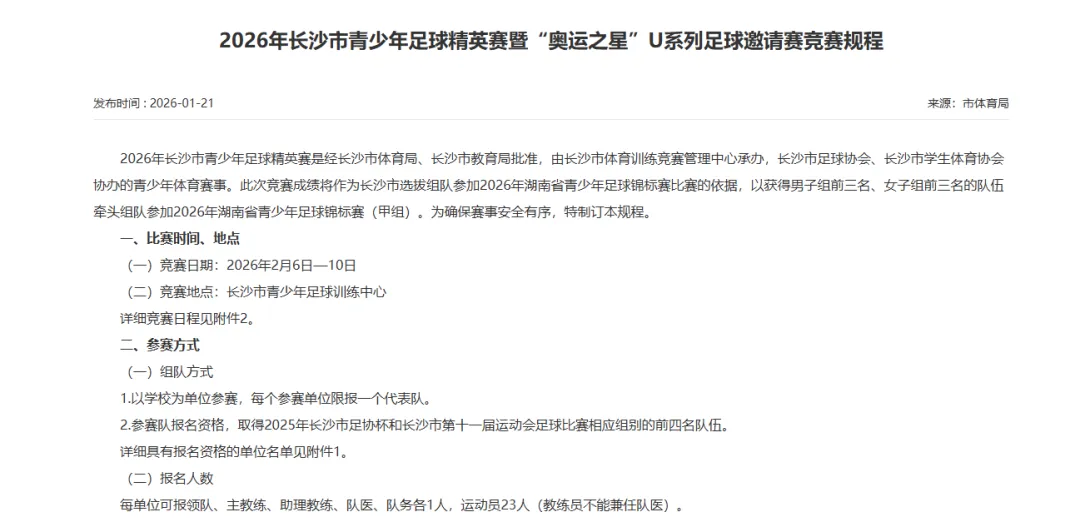 绿茵逐光,少年当燃!2026年长沙市青少年足球精英赛暨“奥运之星”U系列足球邀请赛,已于2月6日在长沙市青少年足球训练中心启幕,赛事持续至2月10日,目前正处于白热化角逐阶段,长沙校园足球精英们齐聚绿茵,用拼搏书写热血青春。