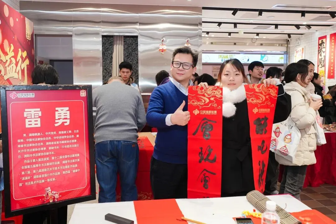 刚领到定制春联的市民李小姐喜笑颜开,连连称赞:“这样的公益活动太有意义了!今年这么幸运,巧遇活动拿到了书法老师亲手书写的马年春联,我真是太高兴了。”李小姐是株洲人,特地来长沙过周末,逛街时偶遇福彩开展送春联活动,立刻参与其中。