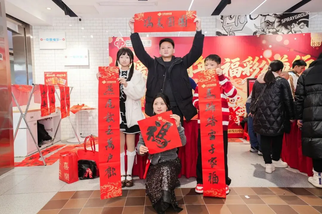 市民刘女士(化名)与丈夫、孩子们在逛街时,看到“暖心中国年 福彩公益行”活动现场给市民送福,全家都投入进来。孩子们争先恐后玩投壶游戏,感受传统文化的魅力。刘女士则亲手挑选了三张“刮刮乐”彩票试试手气,没想到三张全中了。紧接着一家人又精心挑选了一副春联,请张老师现场挥毫泼墨,不一会儿,这副承载着全家好运祈愿的春联便展现在眼前。刘女士说道:“我是一名社区工作者,我能深刻体会到传递公益的意义。今天与爱人和孩子们参加福彩送福的活动,我觉得特别充实、特别幸运!”