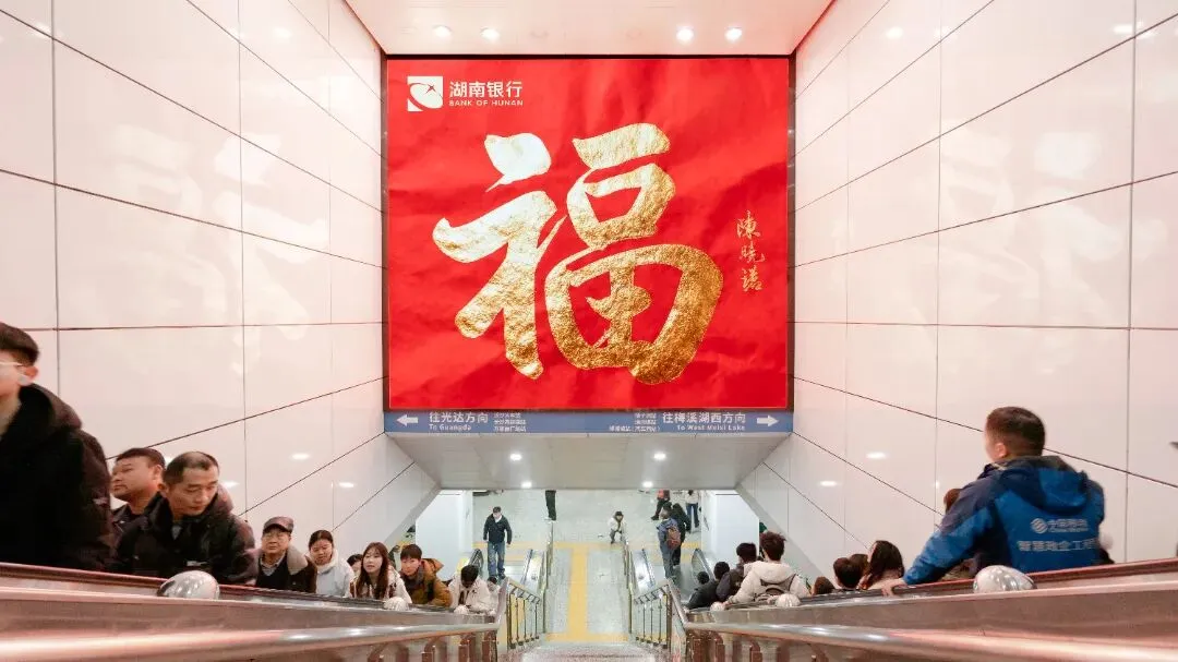 一纸春联、一笔翰墨,把湖湘乡情写进归途。著名湘籍主持人伊一、湘西外卖员李向阳等人的书法作品,与书法名家的墨宝亮相长沙地铁站台门及五一广场站LED梯眉,通过地铁这一城市窗口,传递最真挚的家乡问候,为游子归途增添一份暖意。