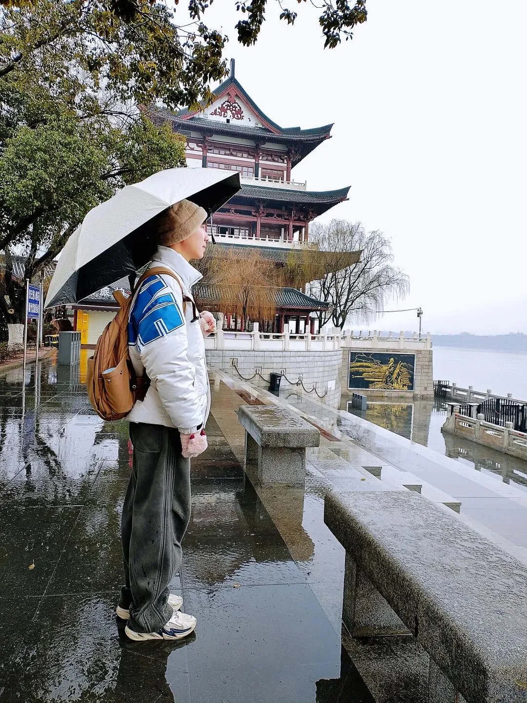 上午12点左右到长沙,闯闯带着去南门口吃了本地特色菜馆,胖冬瓜菜馆。点了三个菜:醋蒸鸡,胖冬瓜肉圆糖蛋汤,特色炒胖冬瓜。都好吃,没浪费,吃了去湘江边走走,到杜甫江阁,雨不大,人不多,走走,聊天。