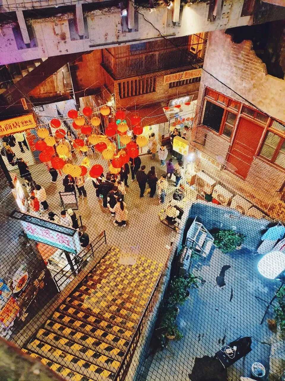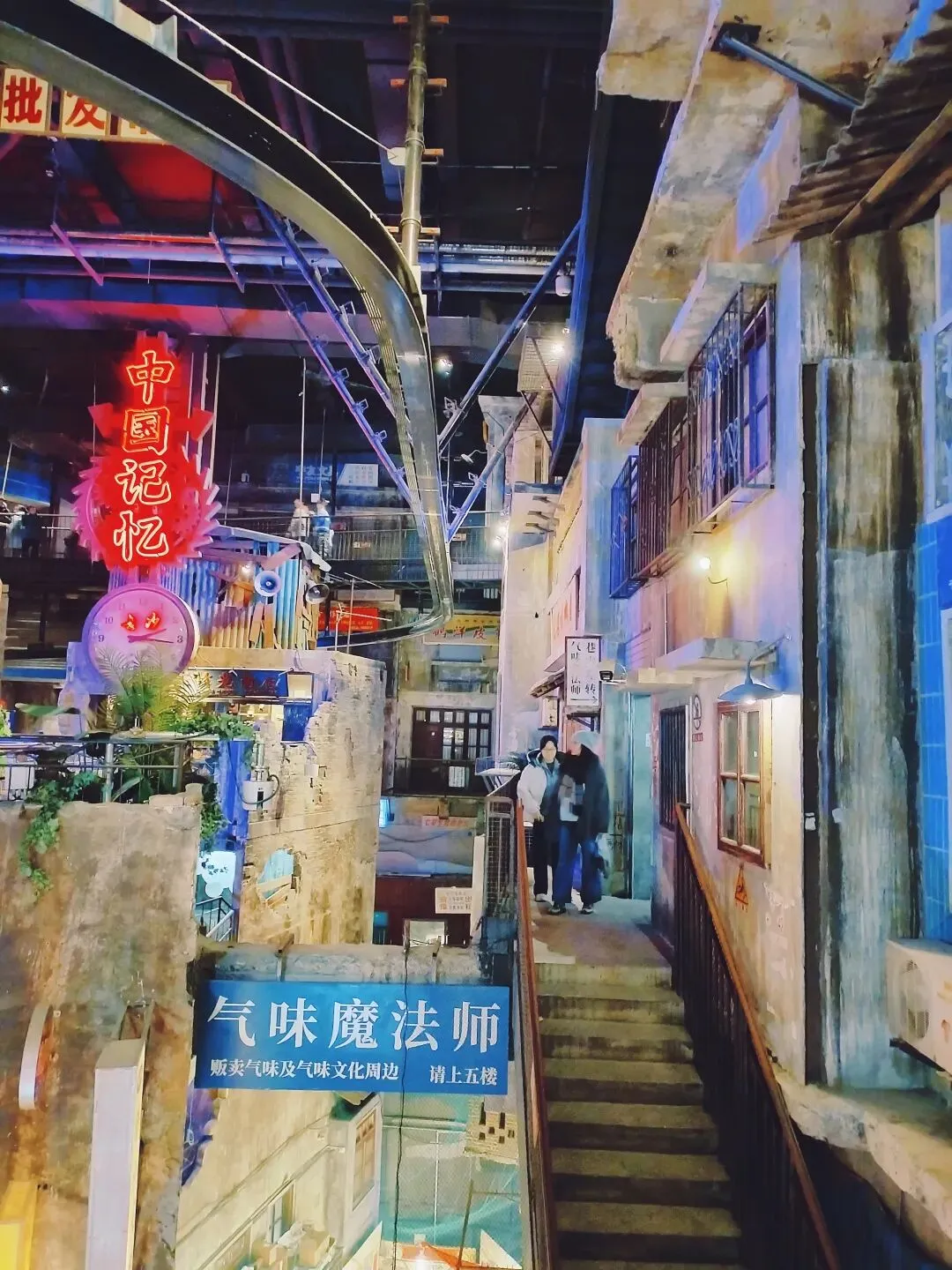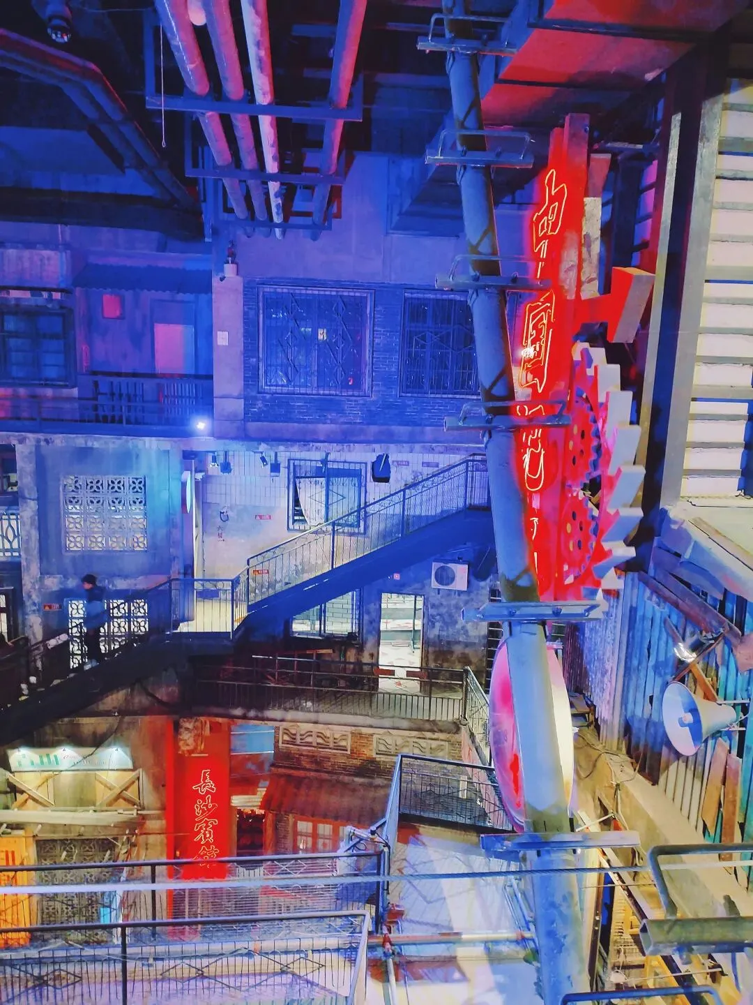 继续,随意走走,就走进了奇幻的文和友。表面看是超现代的摩天大楼,走进去,门口破破烂烂,推开帘子,天啊,魔盒打开了。在摩天大楼里,有六层上个世纪感的好几幢旧楼,应该是老长沙的居民楼,筒子楼,改造成一个千与千寻动画片里感觉的错层楼,很大,百转千回,里面还装了旋转观光时光隧道索道,可以坐着在这错层的建筑中观光。灯光,旧时光的各种物件,瞬间回到童年,魔怔住了,这气场。