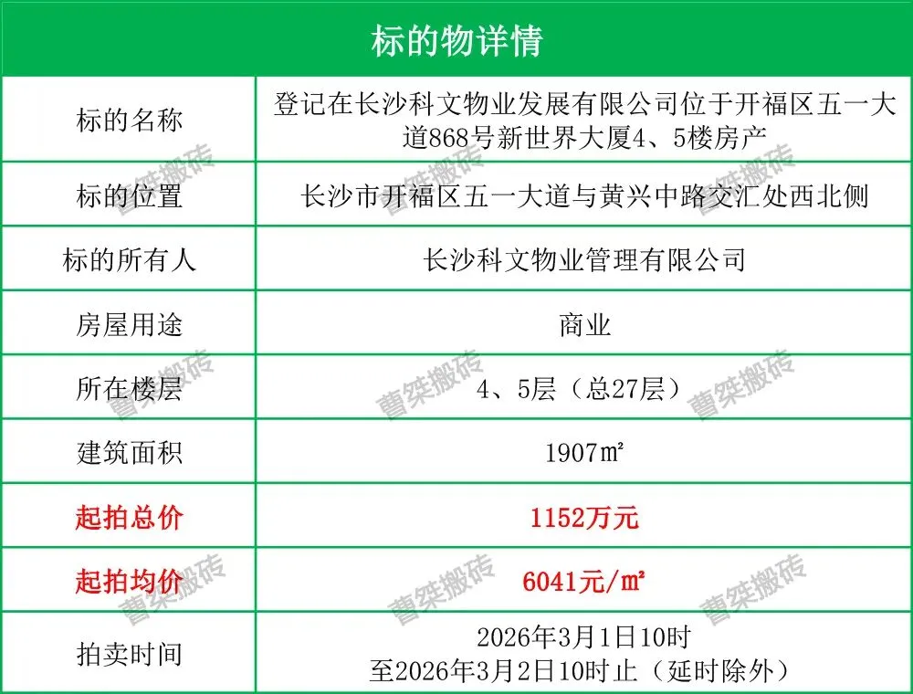 当前位置:首页>长沙>1152万!长沙五一广场新世界大厦商铺拍卖