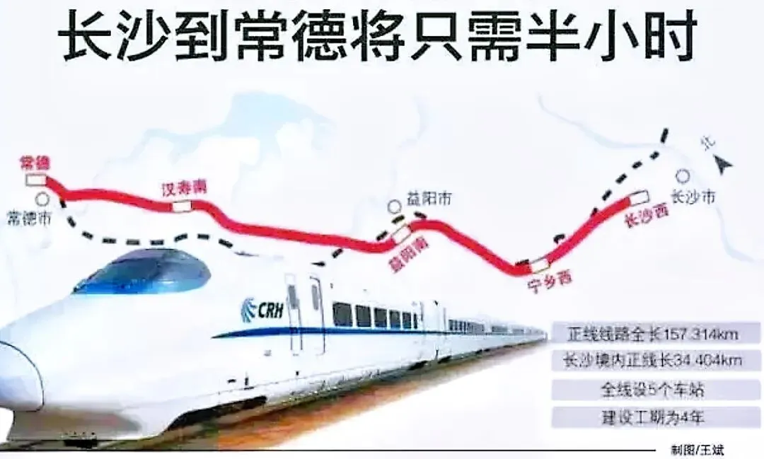 三、长益常高铁通车,长沙建成五向高铁枢纽。长益常高铁是国家“八纵八横”干线高铁——渝厦高铁的组成部分,于2017年12月开工建设,并在2022年12月份建成通车,从而打通了长沙至常德、重庆等地的高铁通道。