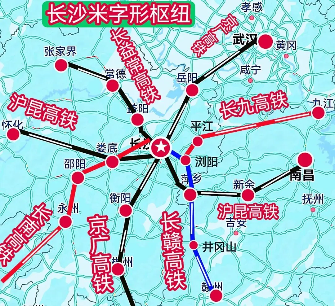目前,长沙米字形高铁枢纽已经建成五向高铁,第六向高铁正在加紧建设中,而最后两条高铁目前已经启动前期准备工作,力争纳入国家中长期铁路规划及“十五五”规划,从而迎来收官之战!