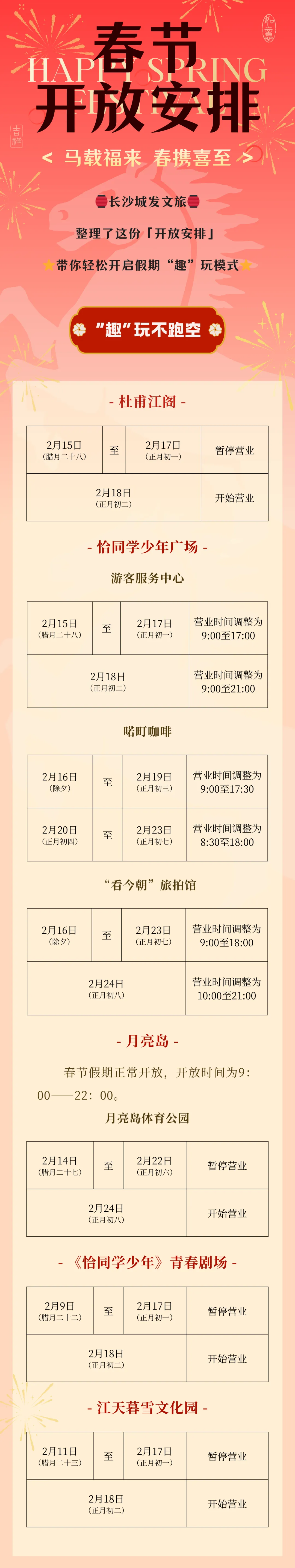 新春来星城,畅游不扑空 | 长沙城发文旅春节期间开放安排