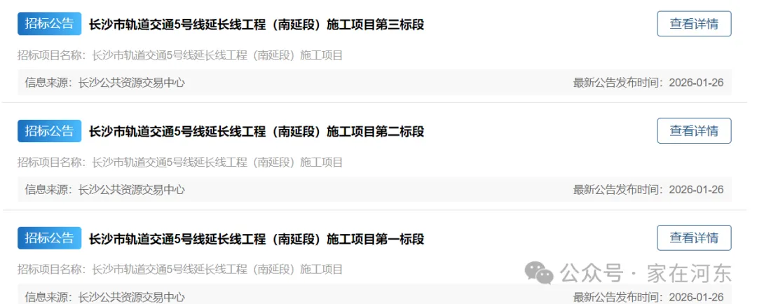 目前长沙地铁5号线南延线已经启动施工招标,动工在即。