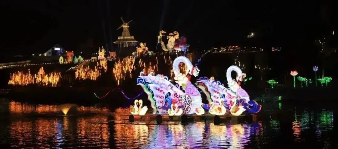 园区内,七大主题灯区各有韵味:《山海经》意象勾勒的“逐梦山海·福佑星城”湖景灯组波光粼粼,星河光影交织的“星河漫步·光影长廊”步移景异,40米巨型神龙灯组搭配激光秀、非遗打铁花的“神龙穿越·洪福齐天”,更是将传统图腾与现代科技交织融合,虚实交错的光影场景,仿佛置身奇幻山海。