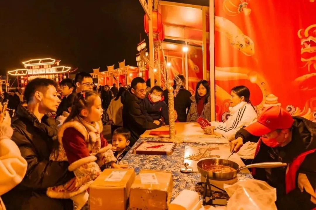 除了震撼的灯展集群,非遗庙会与新春市集更是让年味拉满。记者获悉,活动期间,从白天到夜晚,园区内好戏连台:创意快闪、燃灯祈福仪式开启新春序曲,《凤鸣天驷》威亚飞马表演在河道高空惊艳亮相,狮王争霸、古彩戏法、吃火吐火等非遗绝活轮番上演,DJ、MC与篝火派对的动感节奏交织,传统与新潮碰撞出别样年味。