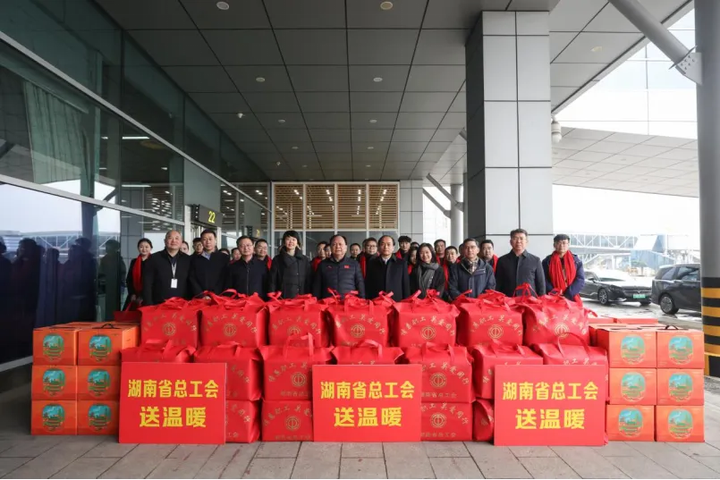 2月6日下午,湖南省总工会主席周农率队到长沙机场机坪开展“两节”送温暖慰问活动,省总工会党组书记、副主席罗琼,省总工会党组成员、经审会主任马晖参加慰问。集团党委书记、董事长,省机场管理局局长舒行钢,集团工会主席肖海波、集团相关单位及部门负责人陪同慰问。