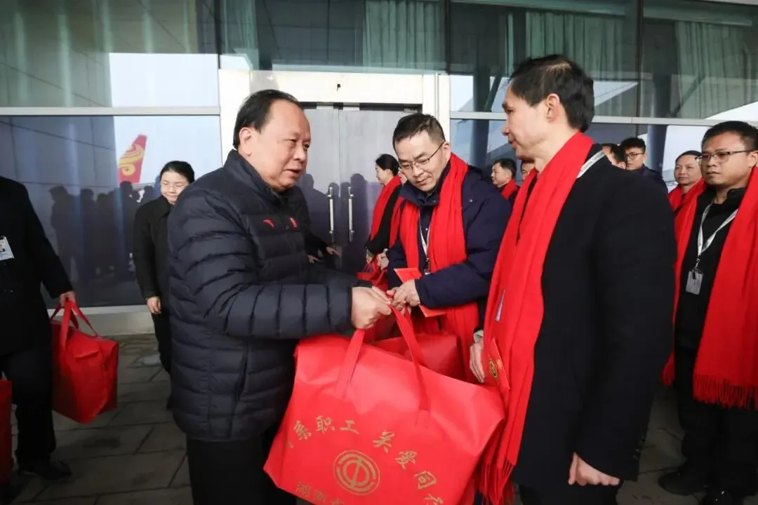 慰问组一行看望了劳模工匠、困难职工和坚守岗位的一线职工代表,向他们送上亲切的问候和诚挚的新春祝福。马晖代表慰问组讲话,他指出,民航业是国家重要的战略产业,是湖南对外开放的空中门户,也是服务民生、促进经济社会发展的交通动脉。要始终绷紧安全这要弦,严守规程、筑牢防线,以最高标准保障航班运行安全;要大力弘扬劳模精神、劳动精神、工匠精神,以昂扬的斗志和专业的素养,不断擦亮湖南民航服务品牌,为全省高质量发展贡献民航力量。工会组织要持续发挥好党联系职工群众的桥梁纽带作用,真正当好职工的“娘家人”和“贴心人”。