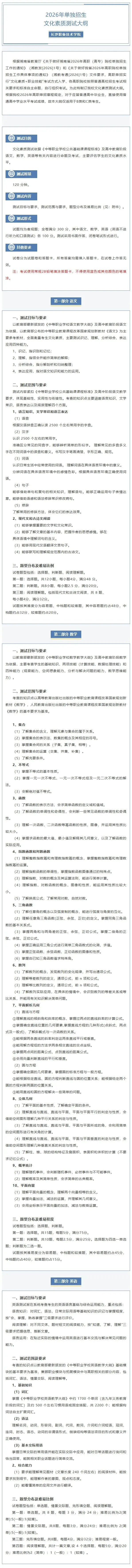 >长沙职业技术学院2026年单独考试大纲