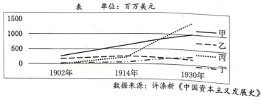 7. 下表反映了20世纪上半叶各国在华投资情况,其中丙()