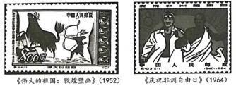 9. 观察图中的两张邮票,可以提炼的主题是( )