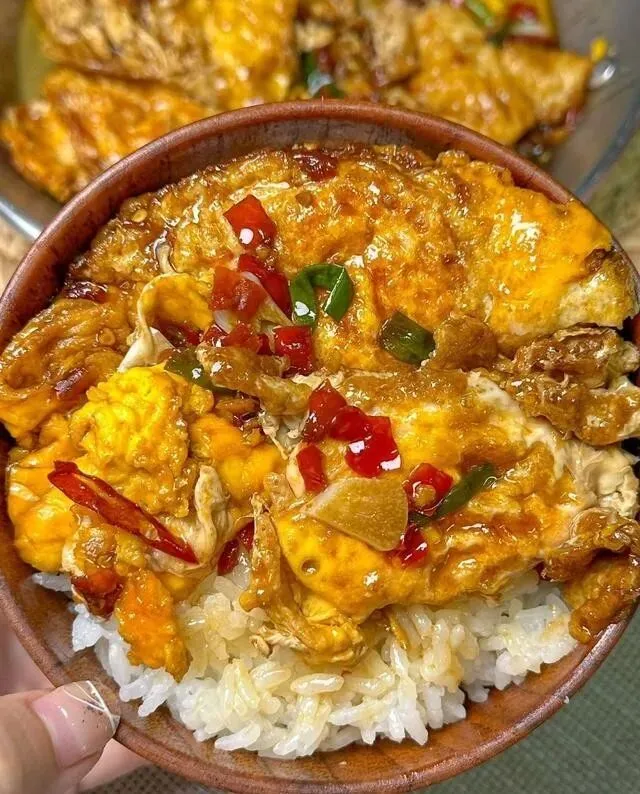 没有大鱼大肉 , 没有绿叶菜 , 就一盘鸡蛋 , 我吃了两大碗饭。 不是我能吃 , 是它太费饭了 , 筷子根本停不下来...