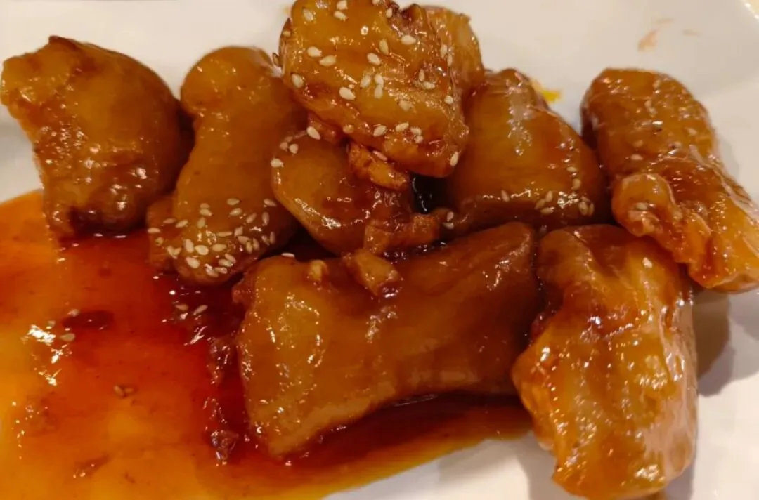 糖醋里脊一上桌,小朋友眼睛都亮了。外皮炸得酥脆,裹着酸酸甜甜的酱汁,不齁甜也不腻,是小朋友超爱的口味,几乎一整盘都被他承包了,看得我们都觉得开心。